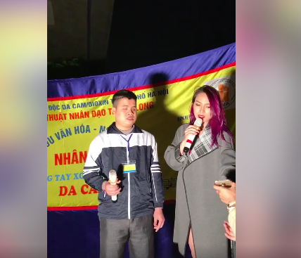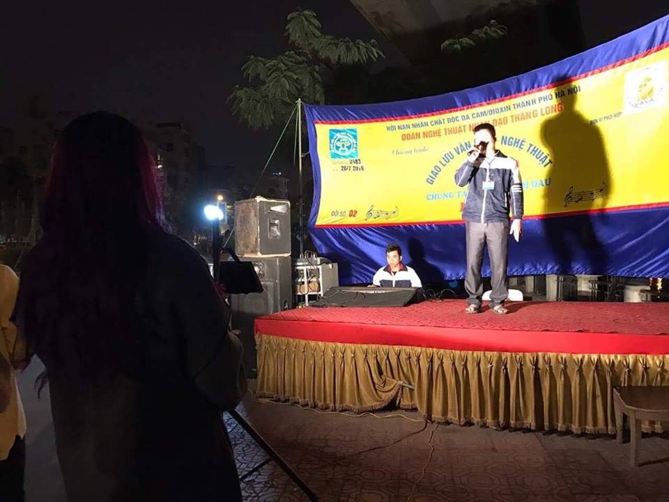 Không chỉ chăm chú theo dõi chương trình văn nghệ, Mỹ Tâm còn lên sân khấu song ca với bạn khiếm thị ca khúc Sầu tím thiệp hồng. Ngay lập tức, rất đông người dân xung quanh đã đứng xem và cổ vũ cho hai giọng ca. Mỹ Tâm cũng không quên nhắn nhủ khán giả ủng hộ bỏ tiền vào hòm từ thiện.
