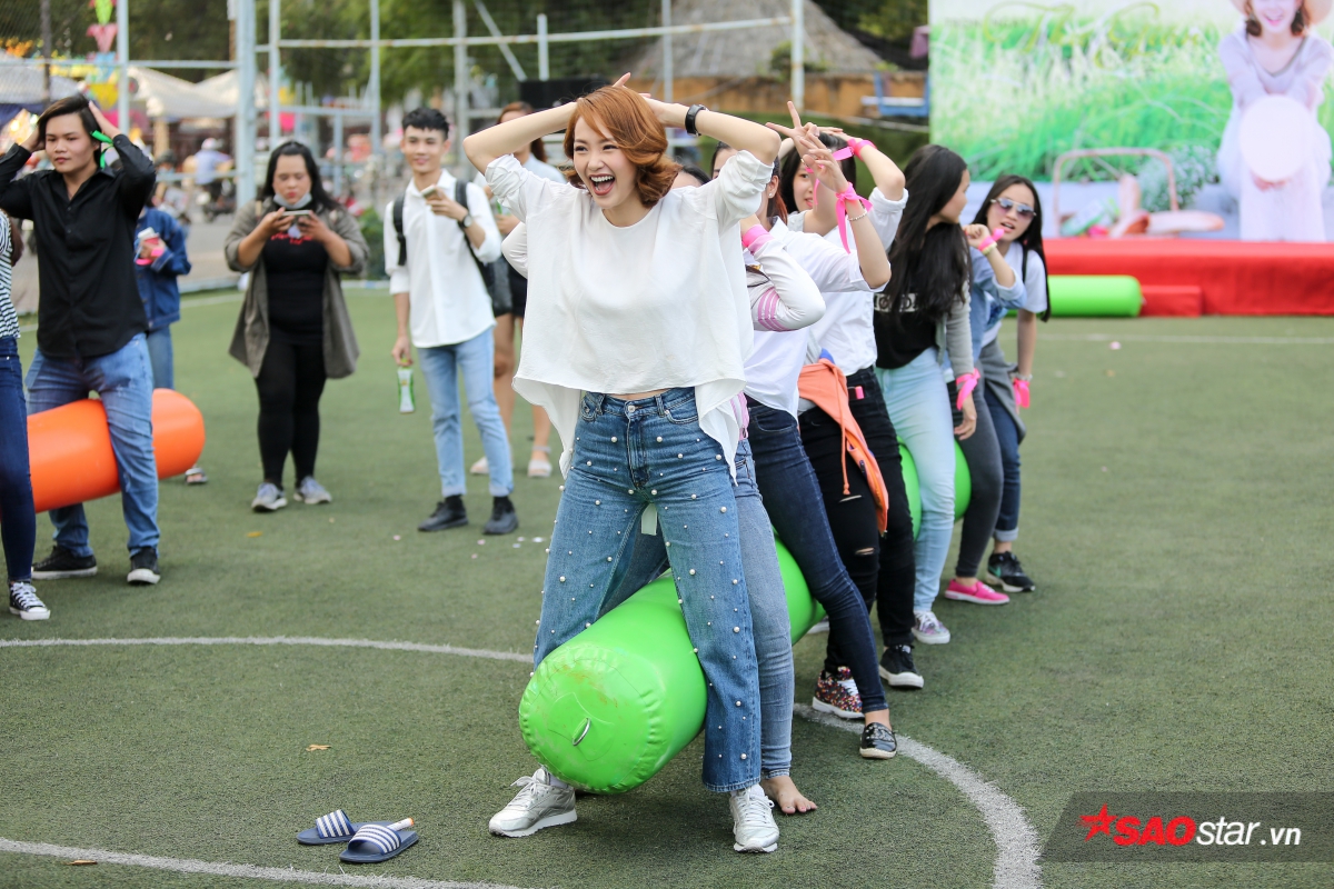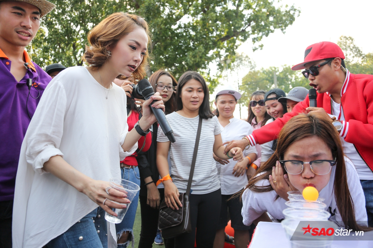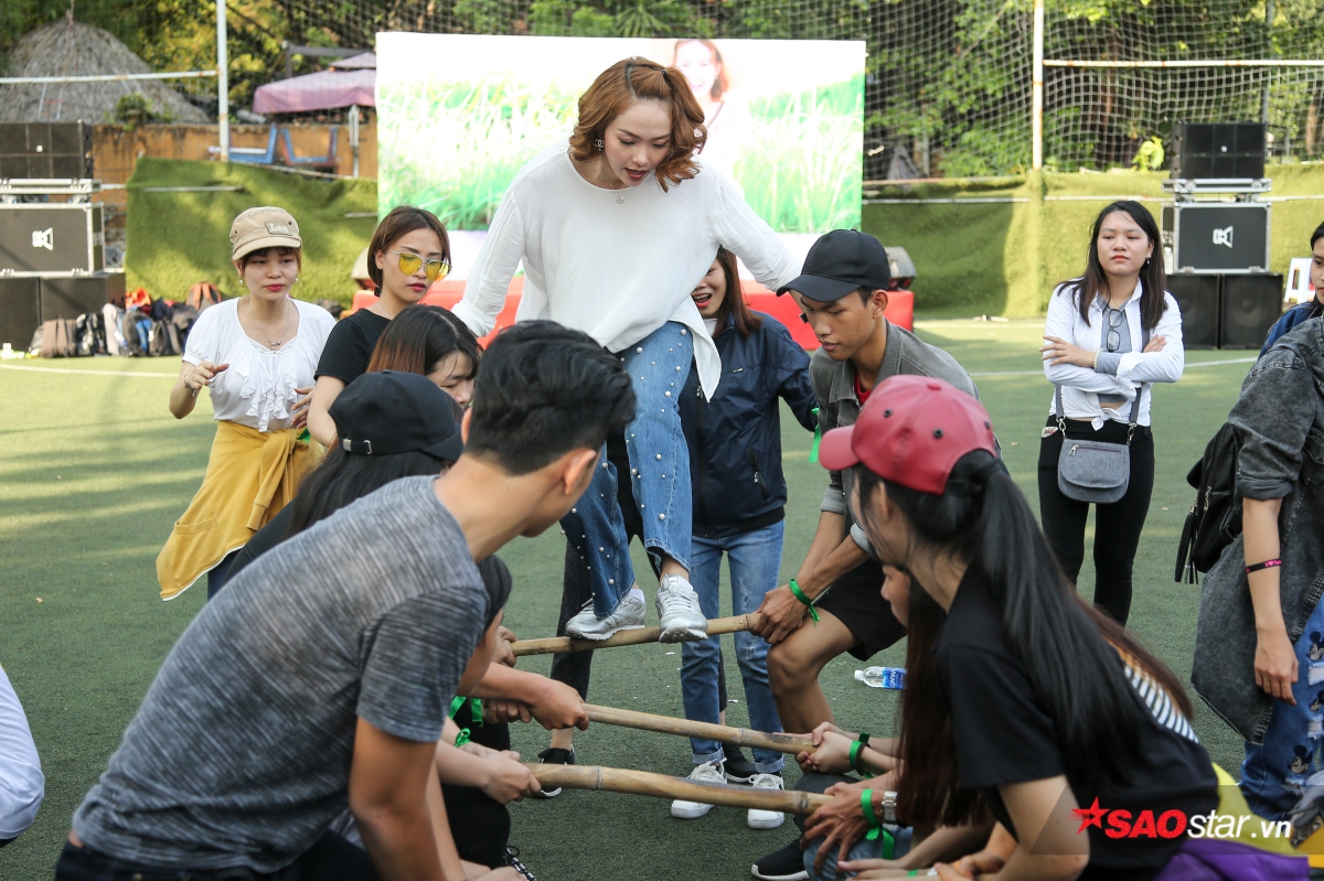 Minh Hằng cổ vũ nhiệt tình để ủng hộ tinh thần cho người hâm mộ. Tuy nhiên, một sự thật đáng buồn là trong buổi dã ngoại hôm nay, nếu Minh Hằng tham gia vào bất kỳ đội chơi nào thì đồng nghĩa việc đội đó luôn về chót. Cô nói vui: “Hôm nay là định mệnh, em vào nhóm nào là nhóm đó thua tan nát”.