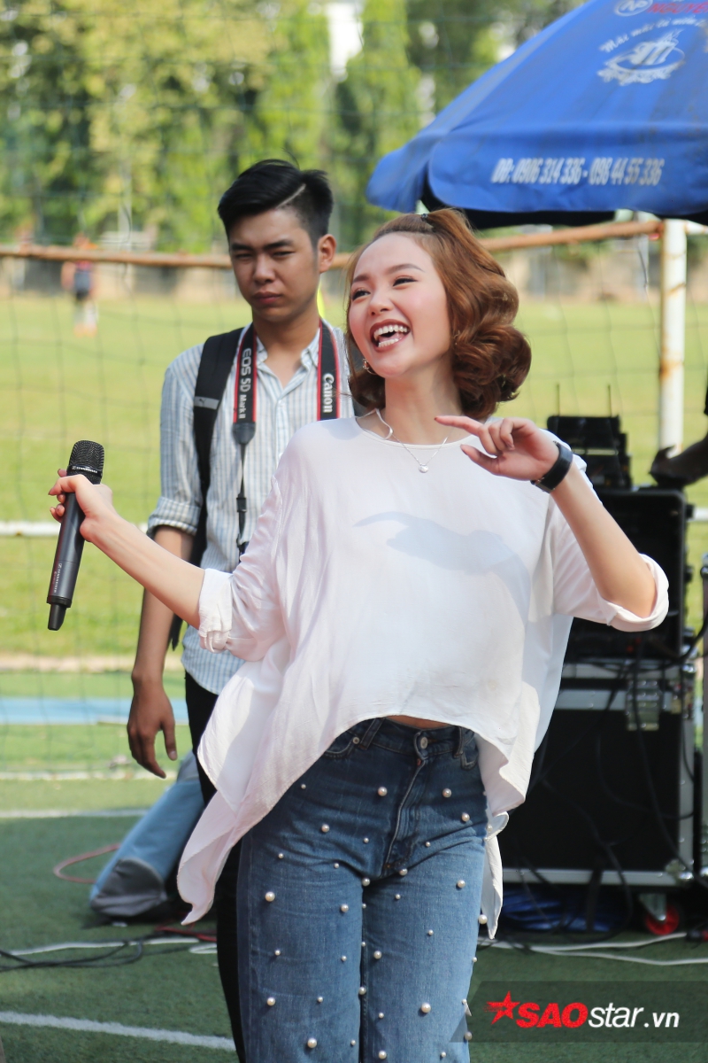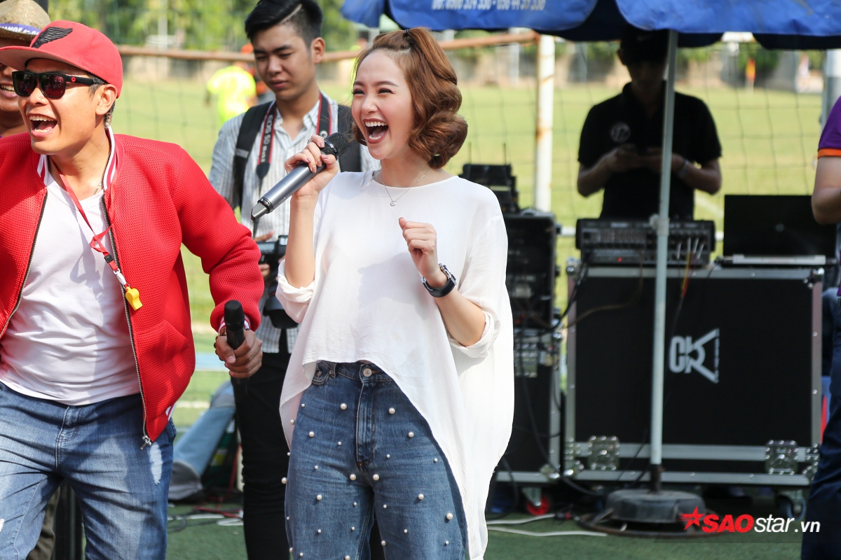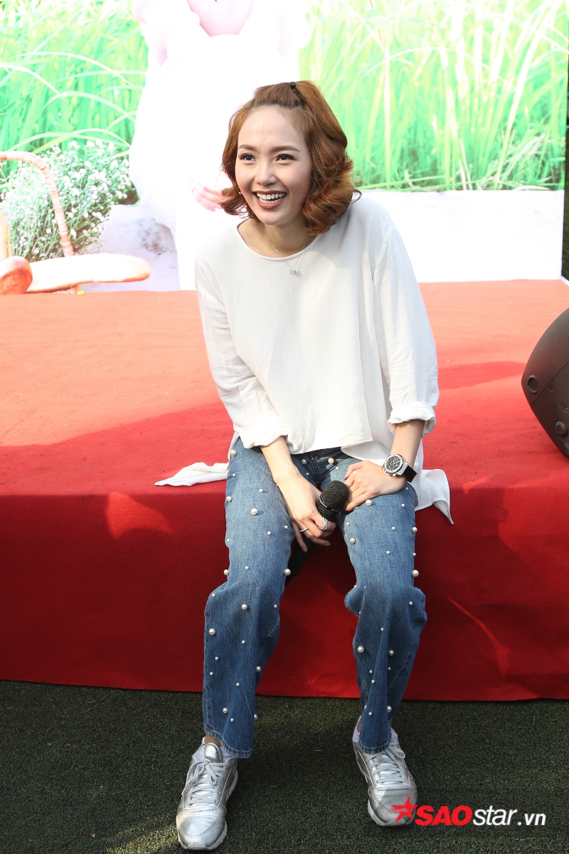 Xuất hiện trong bộ trang phục năng động và khá thoải mái, Minh Hằng cảm thấy tràn trề năng lượng cho buổi họp fan thú vị này.