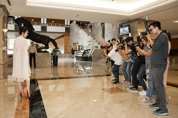 Nữ doanh nhân, diễn viên xinh đẹp thân thiện chiều lòng các phóng viên.