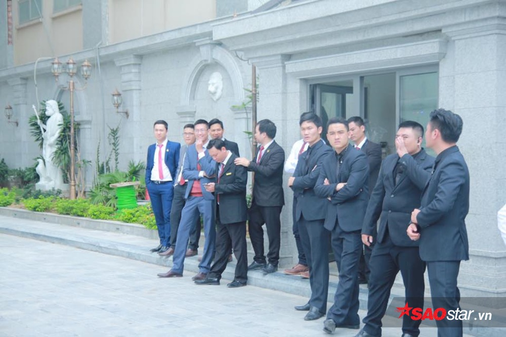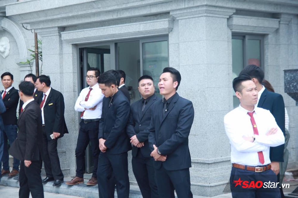 Dàn vệ sĩ đông đảo đứng đợi Seungri bên ngoài tòa nhà.