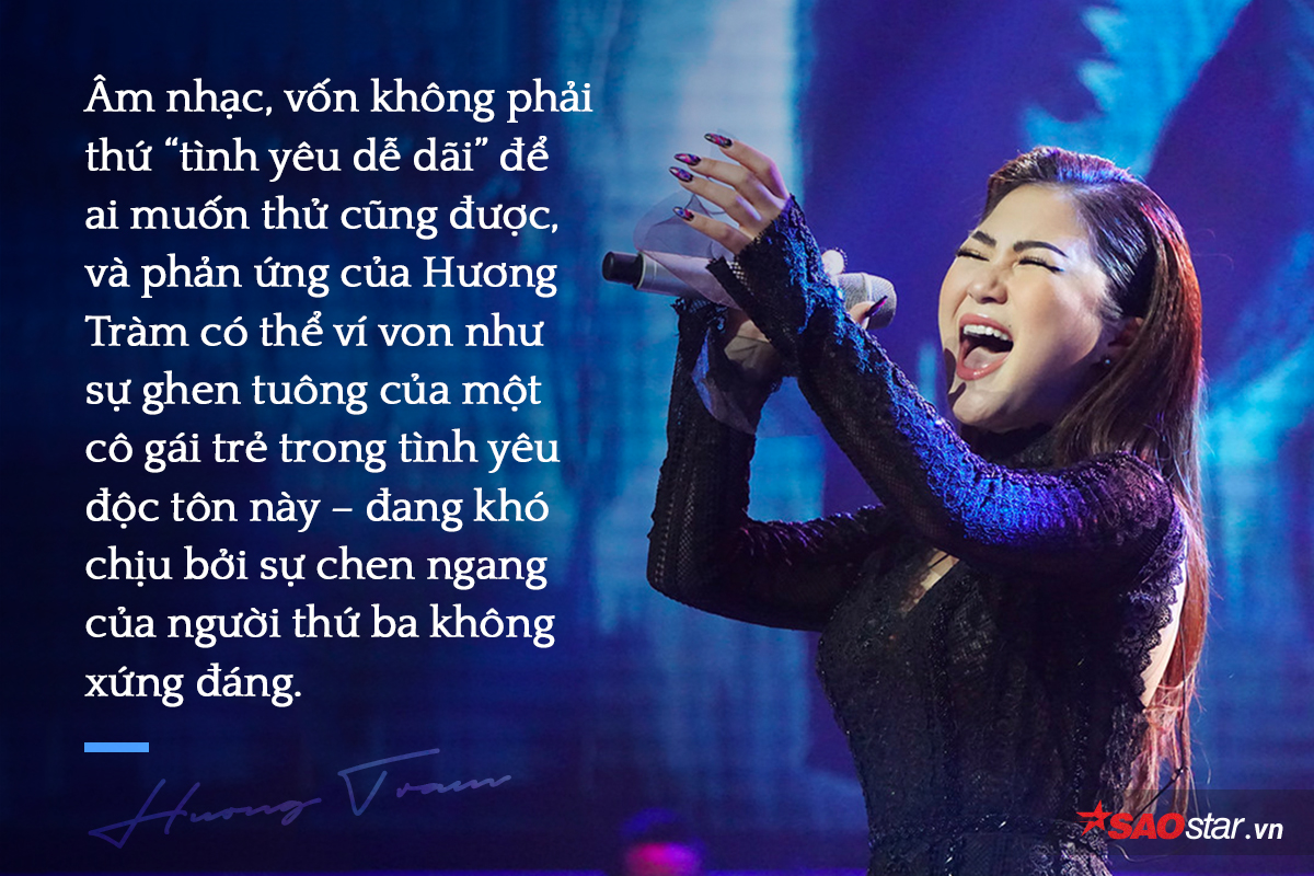 Âm nhạc, vốn không phải thứ “tình yêu dễ dãi” để ai muốn thử cũng được, và phản ứng của Hương Tràm có thể ví von như sự ghen tuông của một cô gái trẻ trong tình yêu độc tôn này - đang khó chịu bởi sự chen ngang của người thứ ba không xứng đáng.