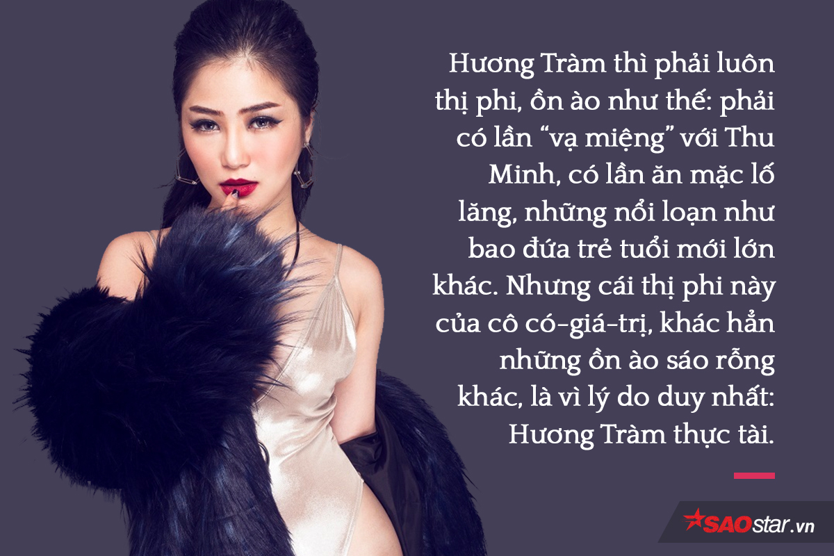 Hương Tràm thì phải luôn thị phi, ồn ào như thế: phải có lần “vạ miệng” với Thu Minh, có lần ăn mặc lố lăng, những nổi loạn như bao đứa trẻ tuổi mới lớn khác. Nhưng cái thị phi này của cô có-giá-trị, khác hẳn những ồn ào sáo rỗng khác, là vì lý do duy nhất: Hương Tràm thực tài. Trong làng giải trí đầy rẫy những mánh mung, chiêu trò, có ai dám chắc mình chưa một lần vô tình hay cố ý tạo scandal để nổi tiếng? Nhưng trong hằng hà những ồn ào đấy, tìm một người có tài năng thực sự - nhiều khi mỏi gối tìm không ra. Và Tràm là “của hiếm” đó!