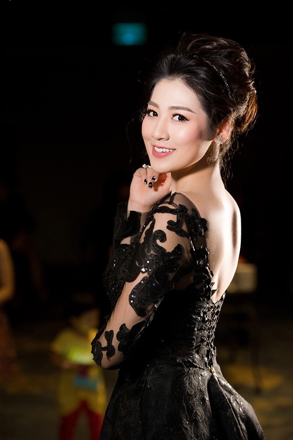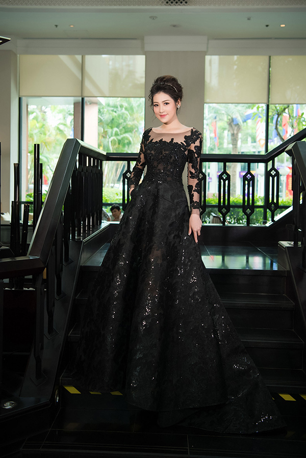 Á Hậu Tú Anh cũng xuất hiện lộng lẫy với một thiết kế đen tuyền của người bạn thân - NTK Nguyễn Thu Thùy được làm riêng cho cô nàng.