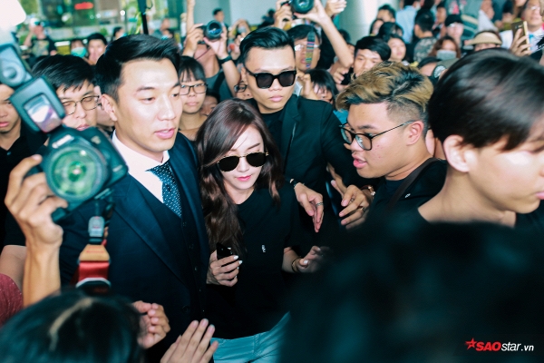 Về đến khách sạn, nữ ca sĩ càng được bảo vệ chặt chẽ hơn. Bởi lẽ, sau lần lỡ hẹn từ buổi họp fan tháng 11 năm ngoái, sự xuất hiện của cô được chào đón nồng nhiệt hơn bao giờ hết. Đây cũng là lần đầu tiên Jessica Jung tham dự sự kiện âm nhạc tại Việt Nam với tư cách solo.