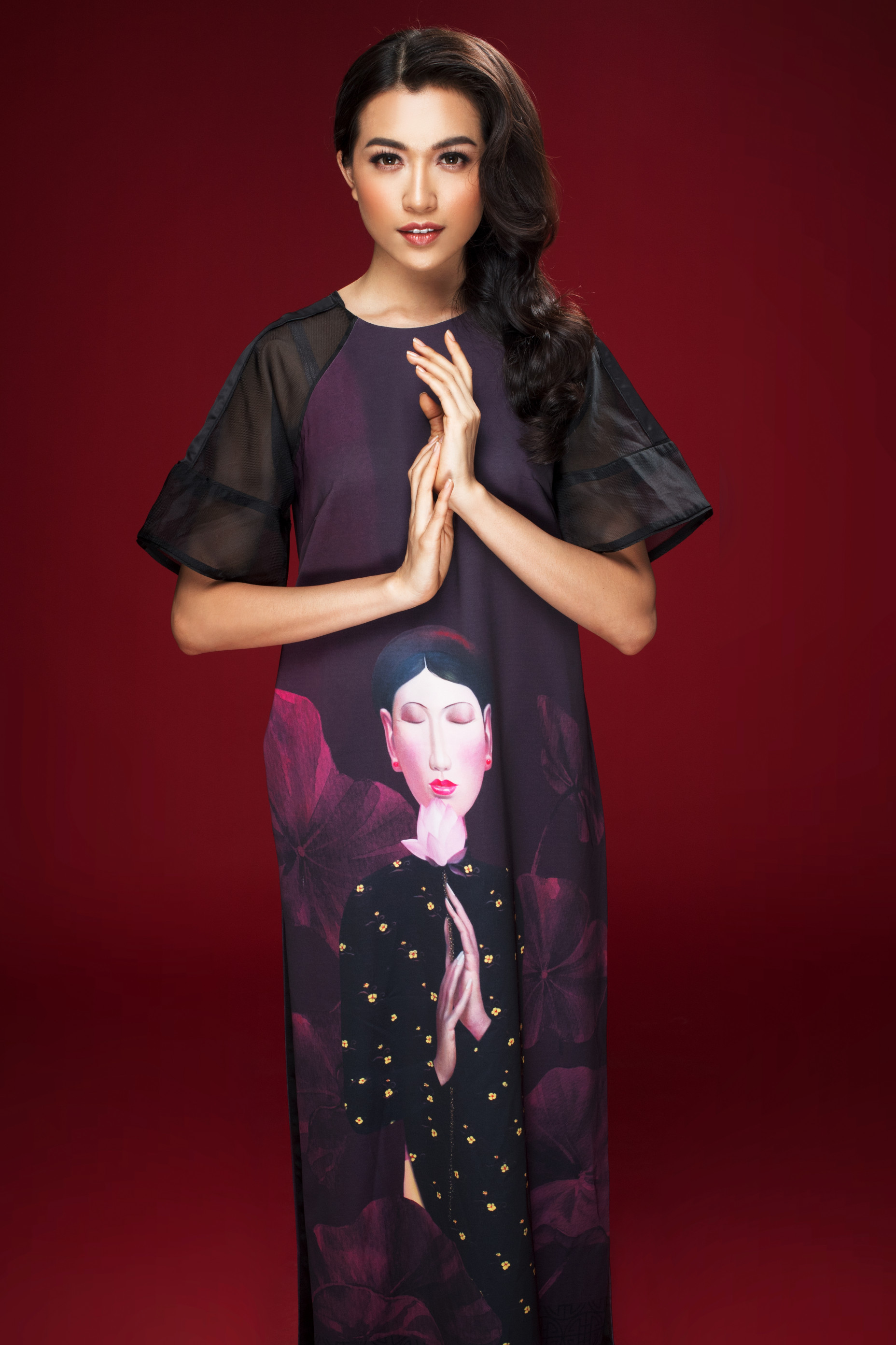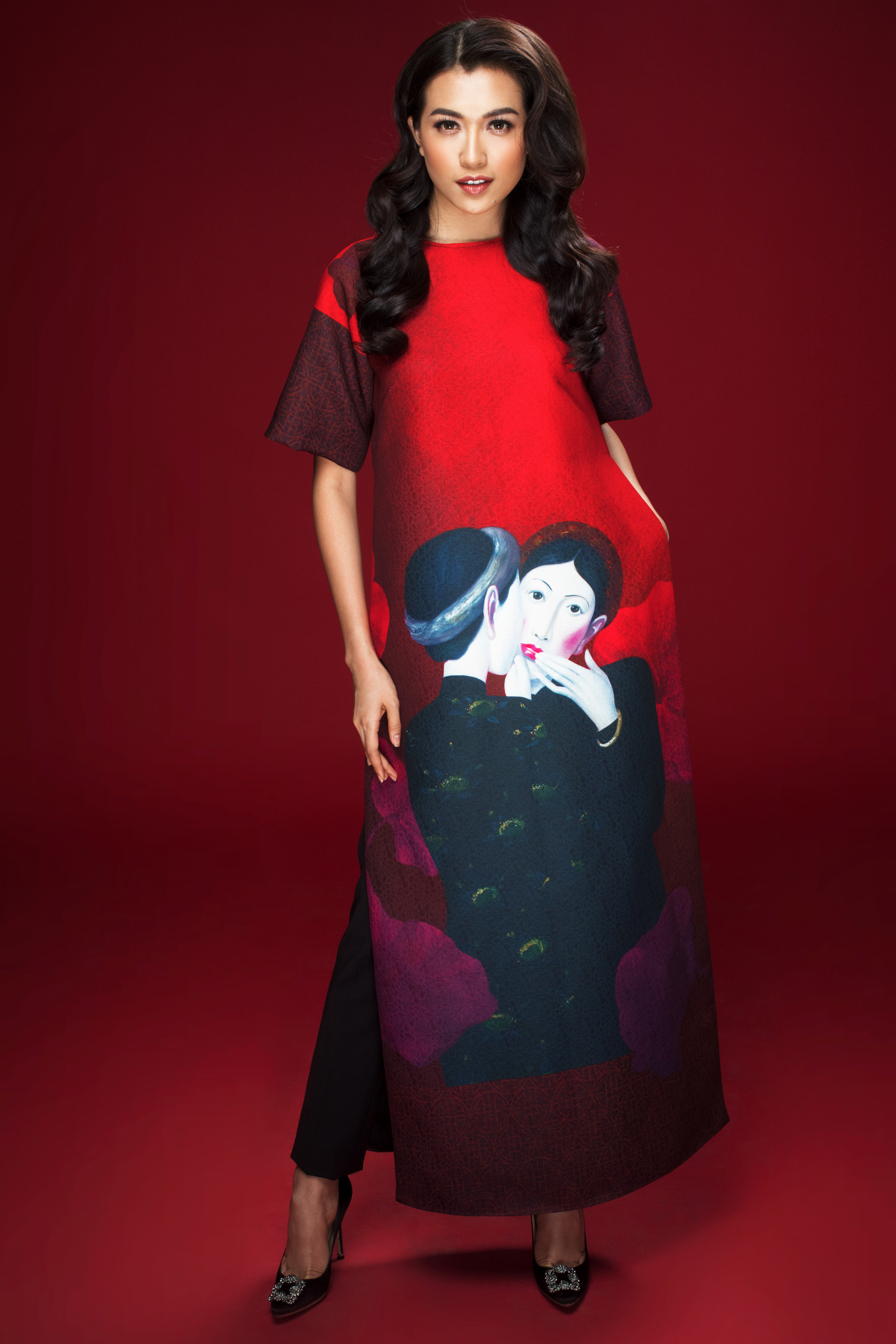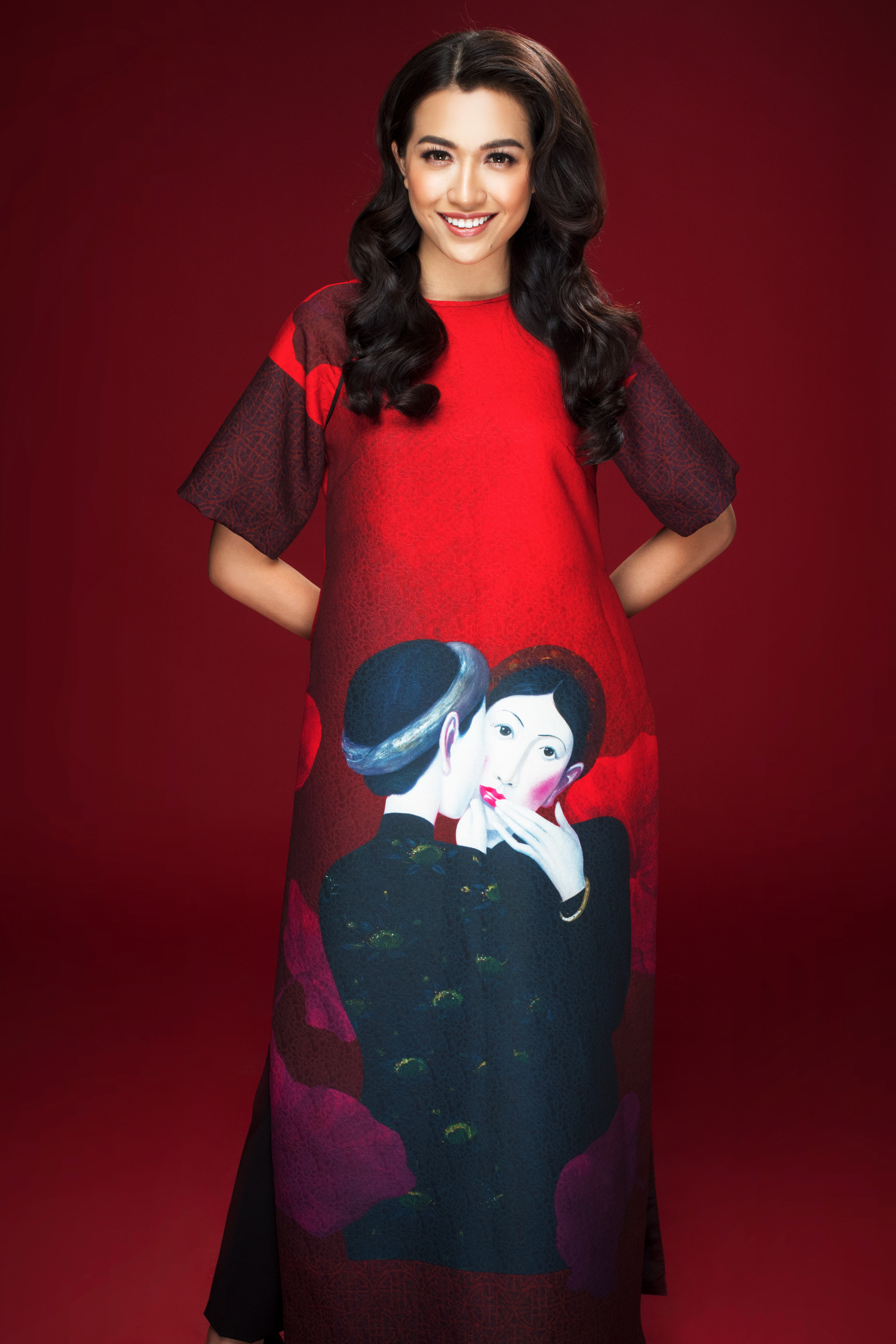 Và ngay lập tức, Lệ Hằng đã lựa chọn những chiếc áo dài đỏ cách tân hiện đại được NTK Adrian Anh Tuấn kết hợp cùng họa sĩ Nguyễn Khắc Chinh phối hợp tạo nên.