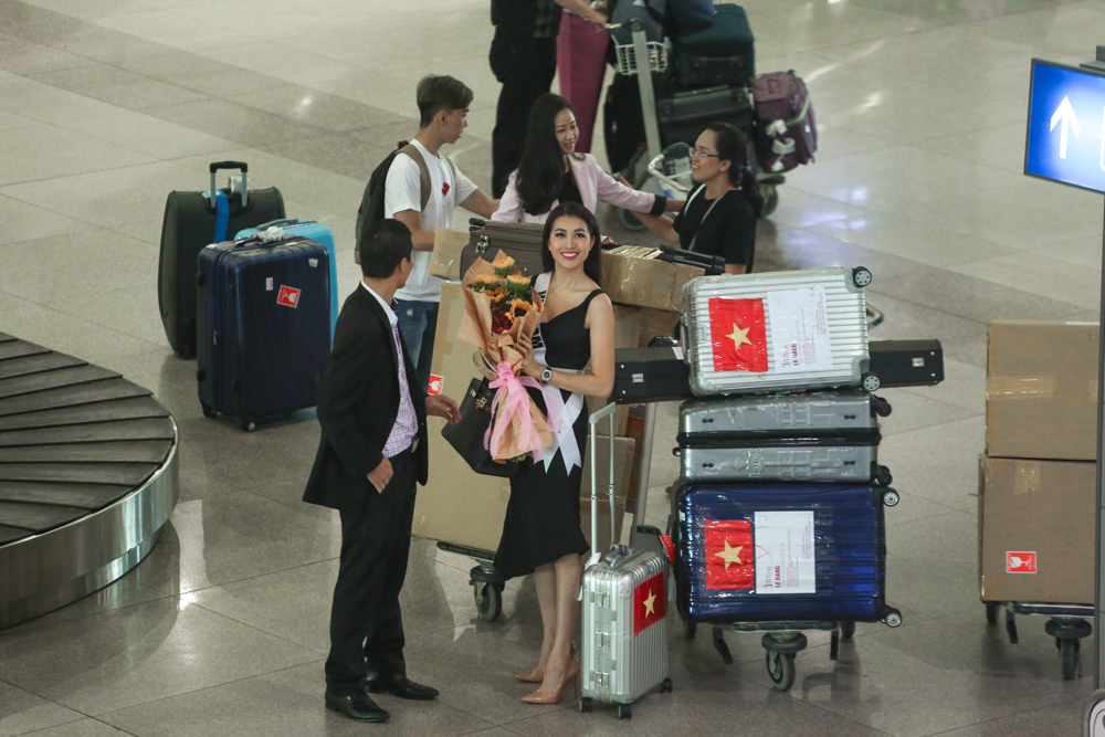 Mặc dù phải thức dậy từ 3 giờ sáng rồi mang rất nhiều hành lý nhưng Lệ Hằng vẫn vô cùng rạng rỡ khi đến sân bay ở Philippines hay khi về đến Tân Sơn Nhất - TP HCM.