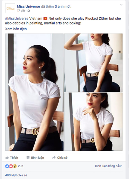 Fanpage của cuôc thi Hoa hậu Hoàn vũ chia sẻ hình ảnh Lệ Hằng cùng lời khen có cánh.
