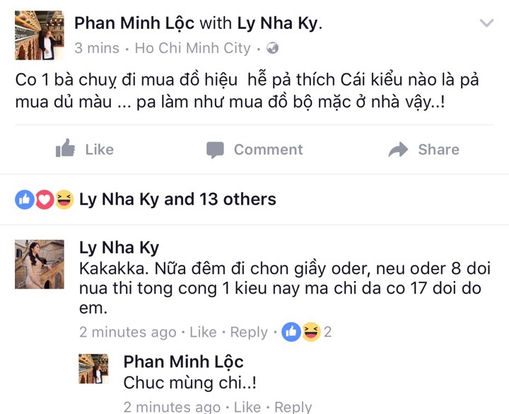 Tuy đã nửa đêm nhưng Lý Nhã Kỳ vẫn bất chấp đặt hàng thêm 8 đôi giày để sở hữu bộ sưu tập 17 đôi cùng một kiểu.