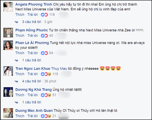 Tuy nhiên, chân dài 25 tuổi vẫn nhận được khá nhiều lời chúc mừng và ủng hộ từ giới nghệ sĩ như Angela Phương Trinh, Ái Phương, Lan Khuê…