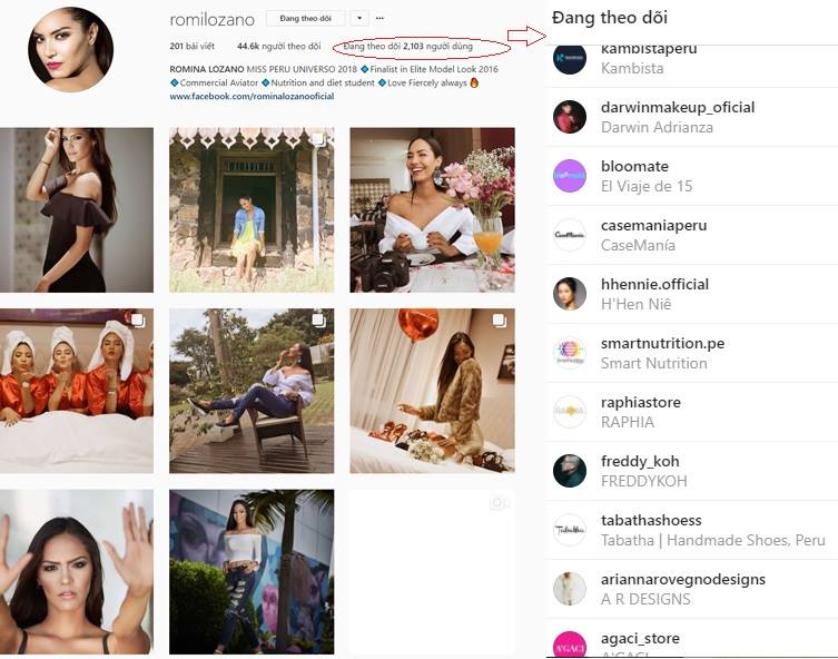 Các người đẹp của Miss Universe 2018 đến từ Peru, Indonesia, Malaysia và Venezuela đã ấn nút theo dõi Instagram cá nhân của H'Hen Niê.