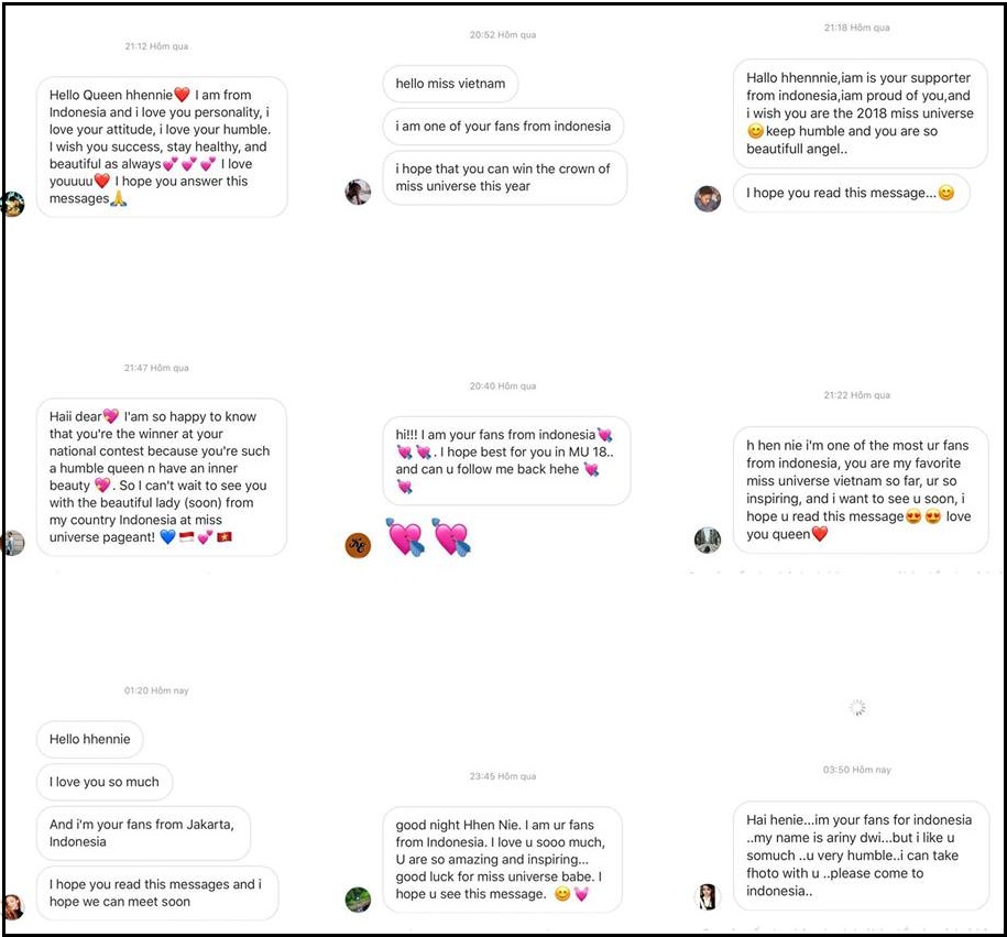Hàng loạt tin nhắn của người hâm mộ Indonesia gửi đến H'Hen Niê.