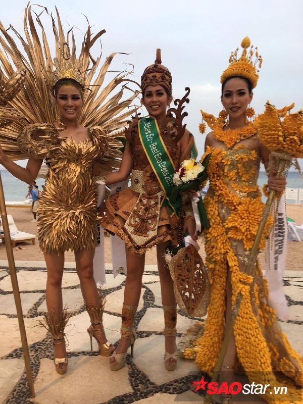 Cách đây vài phút, Nguyễn Thị Thành vừa trải qua thử thách Eco Costume - Trang phục Tái chế, phần thi phụ được mong đợi nhất trong khuôn khổ cuộc thi Miss Eco International 2017.
