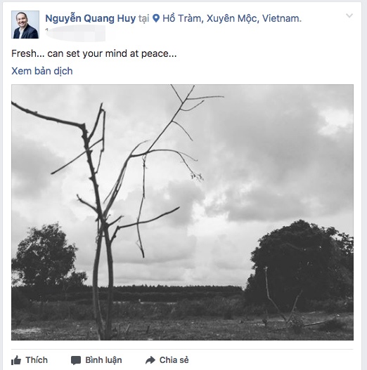 Về phía mình, đạo diễn Quang Huy cũng vừa chia sẻ một bức ảnh khá u ám lại Hồ Tràm.