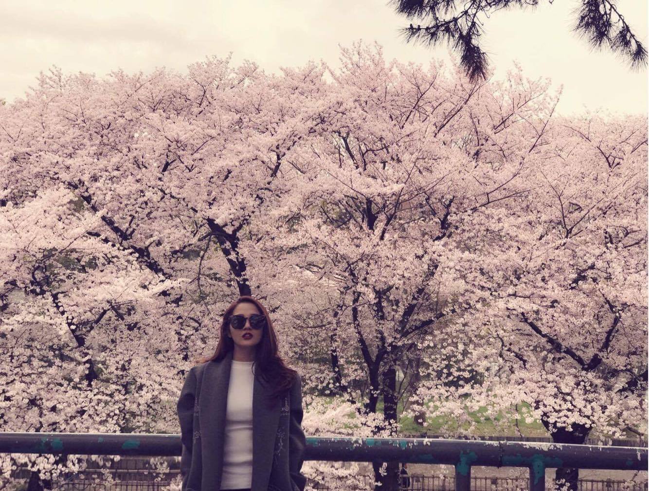 Bảo Anh “làm duyên” bên hoa anh đào.