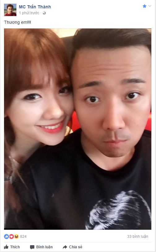 Tuy chỉ vỏn vẹn có hai từ nhưng người hâm mộ vẫn cảm nhận được tình cảm giữa hai vợ chồng dành cho nhau như thế nào. Hiện Trấn Thành có chuyến lưu diễn tại Mỹ nhưng mọi thông tin về Hari Won anh luôn cập nhật liên tục.