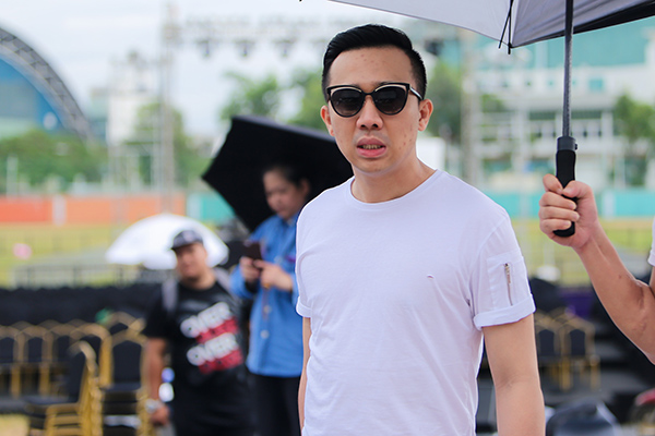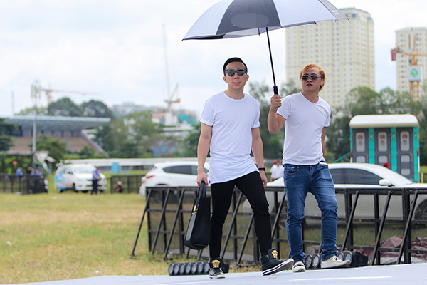 Trong khi đó, MC Trấn Thành lại khiến nhiều người “tròn mắt” khi anh tự lái xe sang tới tổng duyệt chương trình. Đặc biệt, vừa bước xuống xe, Trấn Thành đã có trợ lý che ô đưa vào tận bên trong sân khấu. Dường như trời quá nắng khiến nam MC tỏ ra khá căng thẳng và có phần khẩn trương, nghiêm túc.
