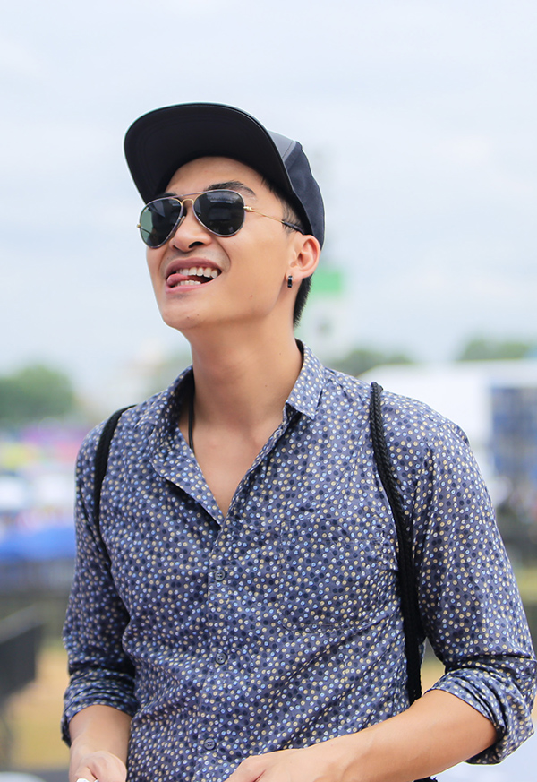 Gương mặt ông xã Hari Won tỏ ra khá mệt mỏi vì trời nắng nóng.