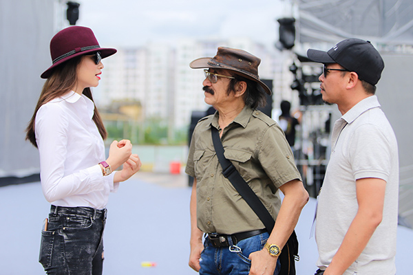Dù thời tiết TP HCM nắng khá gay gắt nhưng Trấn Thành, Phạm Hương cùng nhiều nghệ sĩ vẫn miệt mài tổng duyệt.