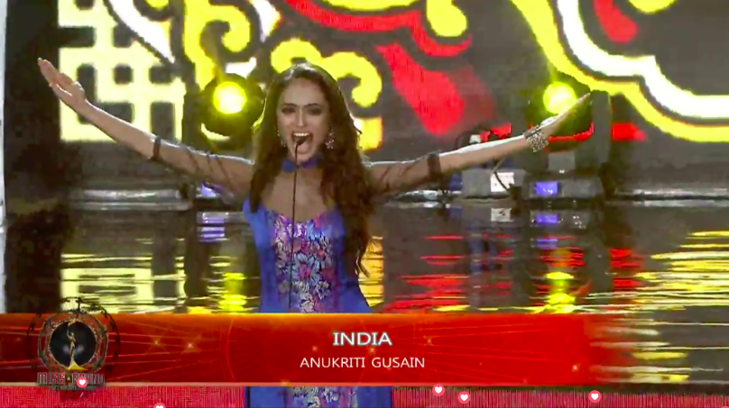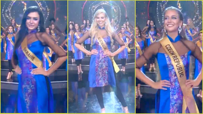20h47: Huyền My xuất hiện trong tiếng hò reo từ khán giả. Cô dõng dạc, tự tin giới thiệu tên và đất nước mình đại diện. Dù giọng vẫn còn khàn do viêm họng nhưng Huyền My thực sự toả sáng ngay từ những giây phút đầu tiên.