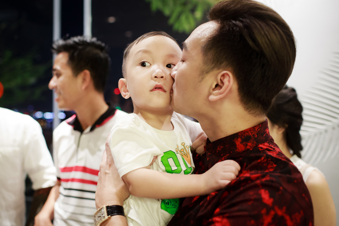 Vợ chồng ca sĩ Tuấn Hưng đưa con trai Su Hào đến chúc mừng Thành Trung.