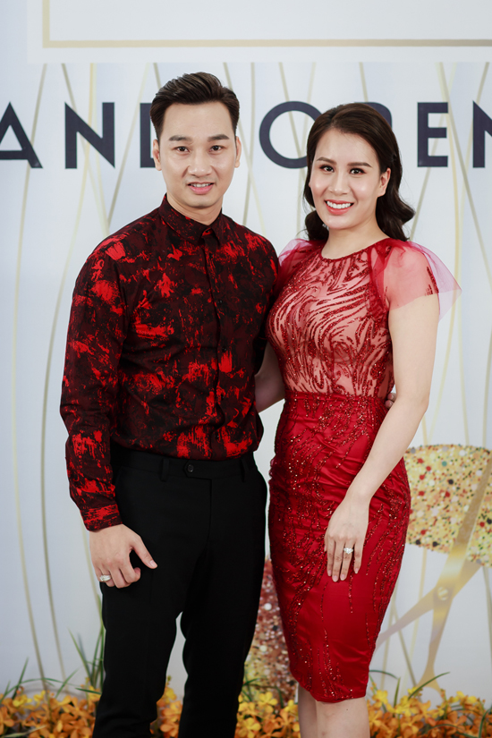 MC Thành Trung và bà xã Thu Hương cùng diện trang phục màu đỏ trong ngày khai trương. Sau 6 tháng kết hôn, Thành Trung cho biết cả hai dự định sinh em bé vào năm 2018. Thời gian này, cả hai muốn tận hưởng cuộc sống vợ chồng son. Ngoài ra, khi mở công ty, Thành Trung giữ chức giám đốc, còn Thu Hương sẽ làm trợ lý cho chồng.