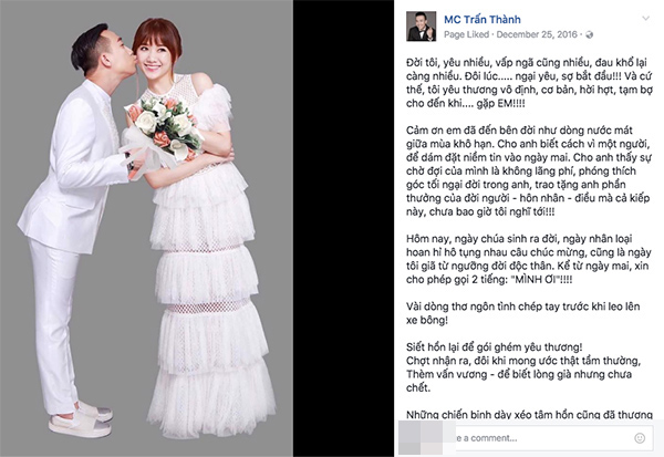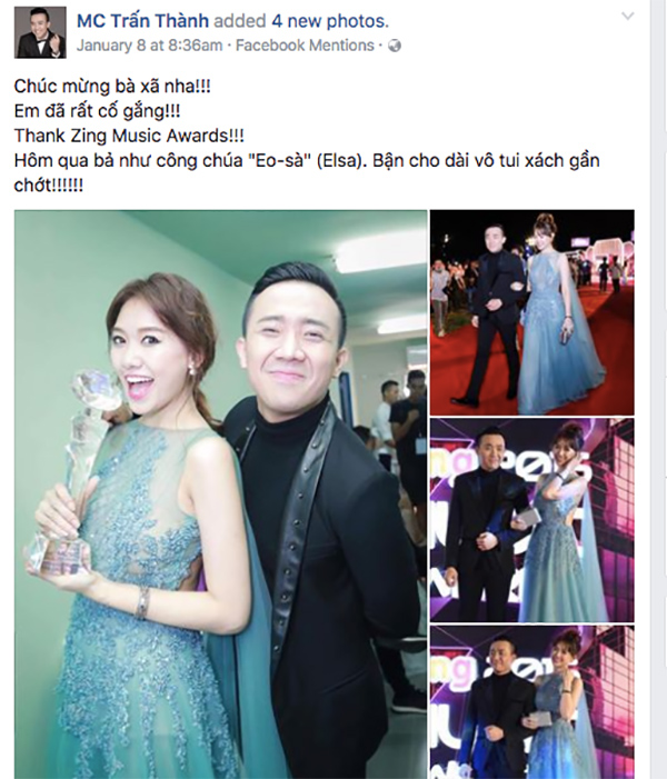Trên trang Facebook cá nhân, anh hạnh phúc gọi Hari Won là vợ…