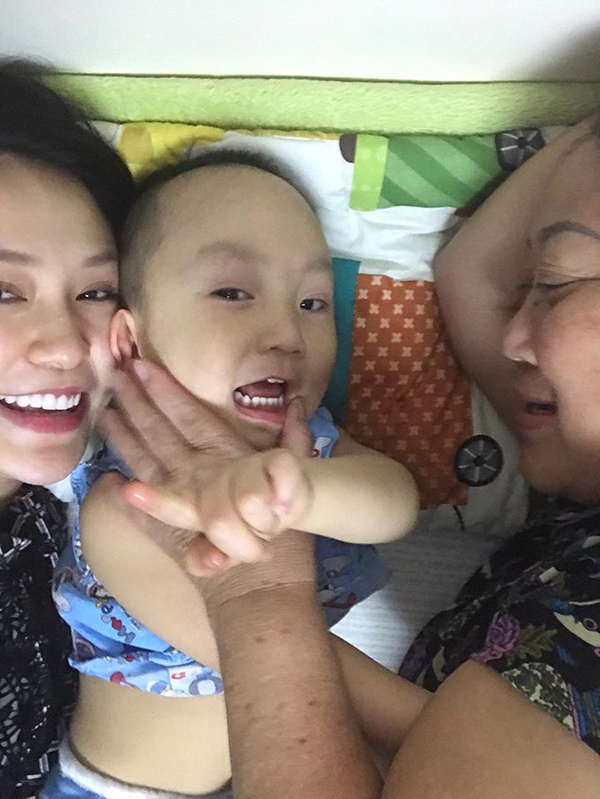 Khoảnh khắc bình yên giữa mẹ Tuấn Hưng cùng con dâu và cháu nội khiến anh vô cùng xúc động.