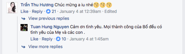 Hai vợ chồng nam ca sĩ còn thường xuyên bình luận ngọt ngào trên Facebook cá nhân.