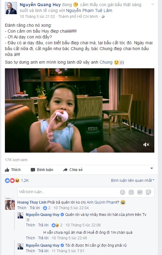 Trước đó, cả vợ chồng Phạm Quỳnh Anh và Quang Huy thường cùng nhau chăm sóc con và chia sẻ trên mạng xã hội nhưng hiện tại thì khán giả lại không còn thấy được điều đó. Khi được Hoàng Thùy Linh tag vào trang cá nhân của Quang Huy, cựu thành viên nhóm H.A.T cũng chỉ im lặng và không trả lời.