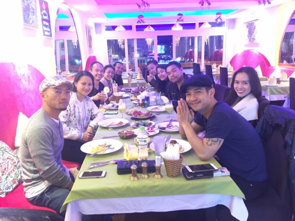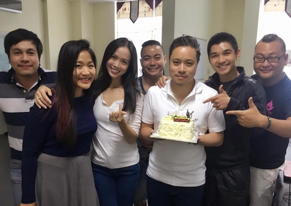 Cả hai cùng đoàn phim tổ chức sinh nhật cho Victor Vũ.