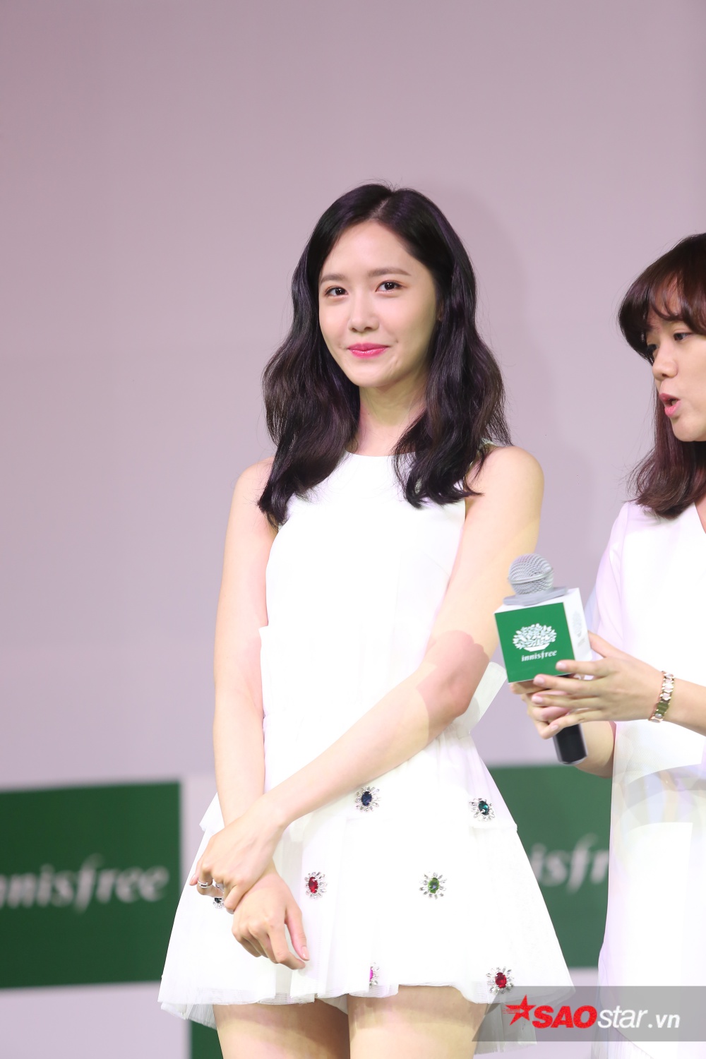 Không chỉ gây ấn tượng mạnh mẽ với nhan sắc cực xinh đẹp, Yoona còn chiếm được rất nhiều cảm tình khi vô cùng thân thiện và gần gũi. Nữ ca sĩ cho biết dù đã tới Việt Nam nhiều lần nhưng vẫn chưa có dịp trải nghiệm nhiều văn hoá đất nước chữ S. Chính vì thế, cô hy vọng các fan sẽ giới thiệu cho mình những món ăn thật ngon. Đặc biệt, trong buổi họp báo, Yoona còn khiến những ai có mặt không khỏi thích thú khi tiết lộ sẽ hội ngộ khán giả qua một dự án phim truyền hình lên sóng vào tháng 7 tới. Không những thế, cô còn úp mở một hoạt động dành cho fan Việt nhân dịp kỉ niệm 10 năm SNSD thành lập.