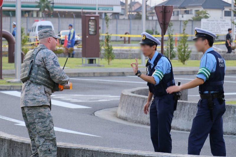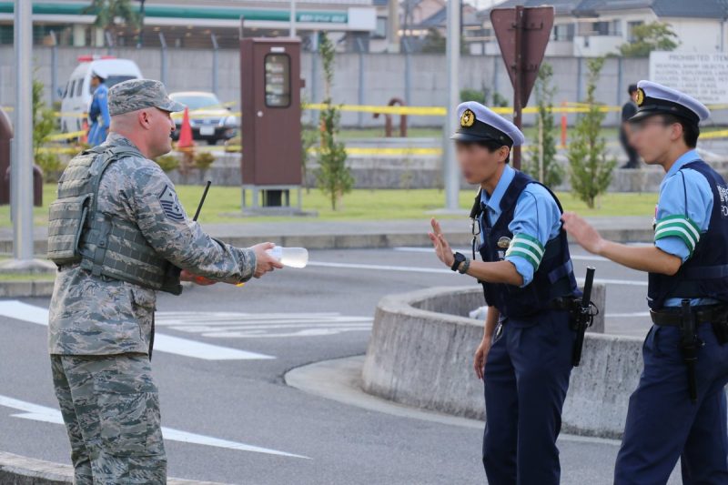 Theo Next Shark, bức ảnh này được chụp từ hồi tháng 7 và 2 cảnh sát Nhật này đang làm nhiệm vụ bảo vệ cho lối vào căn cứ đặt tại địa phương của lực lượng không quân Mỹ. Một phi công người thuộc lực lượng phòng không Mỹ đang muốn đưa cho 2 cảnh sát kia một chai nước soda cam để họ uống nếu cảm thấy khát.