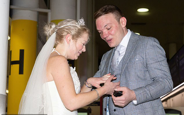 Cả hai mặc đồ cô dâu-chú rể và gặp nhau lần đầu tiên tại sân bay Gatwick trong chuyến đi tới Las Vegas. Hôn lễ được tổ chức vào đúng ngày lễ Giáng sinh 25/12.