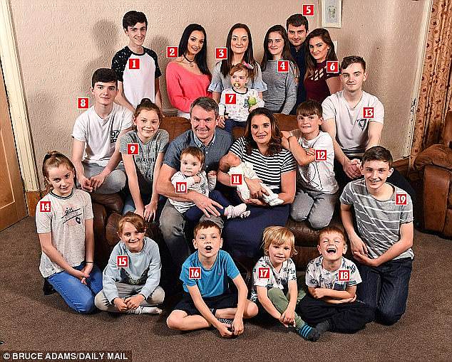 Dù mới 43 tuổi nhưng bà Sue Radford và ông Noel (47 tuổi) sống tại thành phố Morecambe, Lancashire, Anh đã có với nhau 20 người con và sắp chào đón đứa con thứ 21, mặc dù khi hạ sinh người con thứ 20 vào tháng 9 năm ngoái, cặp vợ chồng đã quyết định “dừng lại thôi vì hết tên đặt rồi”.
