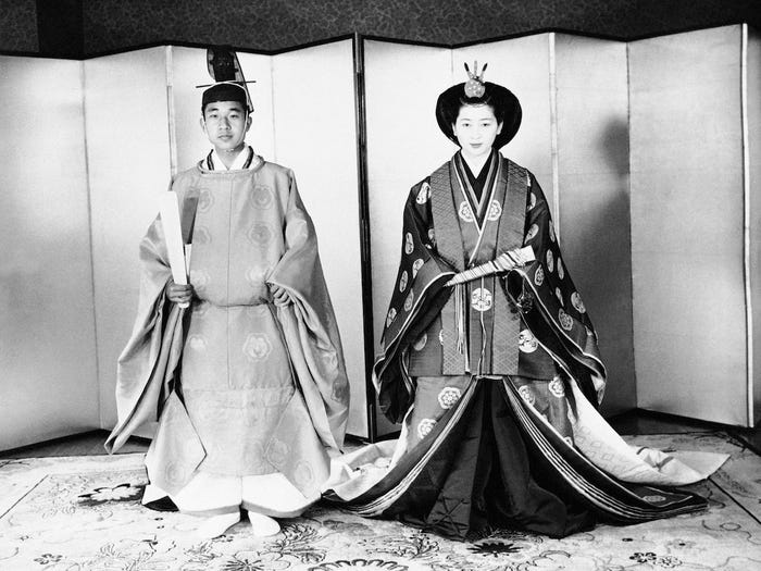 Hoàng đế Akihito và Hoàng hậu Michiko trong lễ cưới vào năm 1959.
