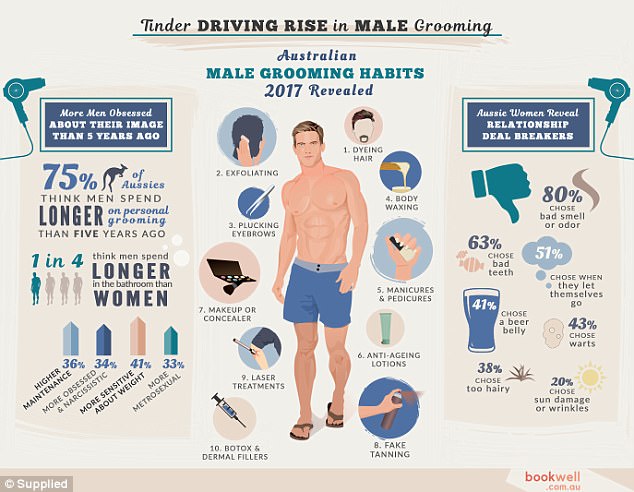 Hơn 1/3 người Australia cũng nghĩ rằng đàn ông đang dần hình thành thói quen “bảo trì” sắc đẹp và bị ám ảnh nhiều hơn về ngoại hình của bản thân.