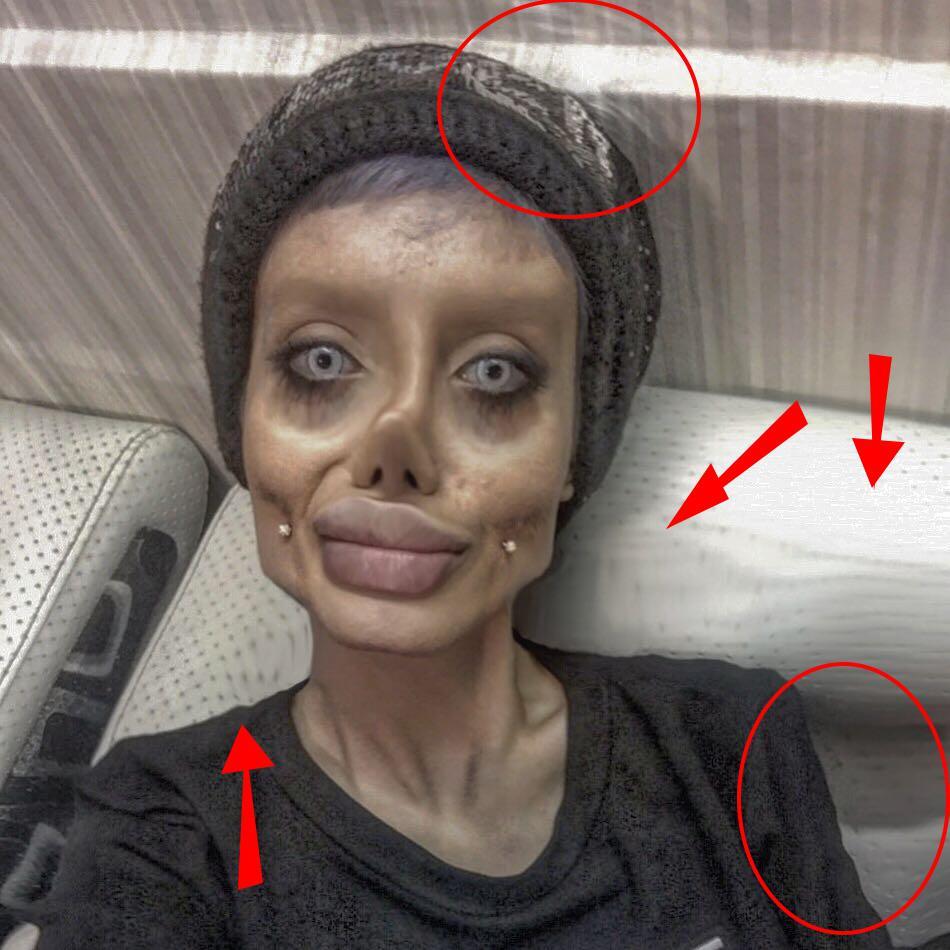 Tuy nhiên, thay vì giống Angelina Jolie, cô gái trẻ này lại bị nhận xét là có gương mặt của “cô dâu xác sống” hay zombie. Sau khi xem kỹ nhiều bức ảnh và video, cư dân mạng nhanh chóng phát hiện nhiều điểm bất thường và nghi ngờ cô gái đã dùng phần mềm chỉnh ảnh trước khi đăng tải, nhằm phóng đại “sắc đẹp” của mình.