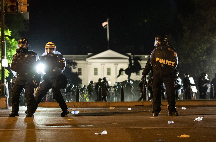 Cảnh sát được triển khai gần khu vực Nhà Trắng khi người biểu tình tụ tập phản đối cái chết của người da màu George Floyd.