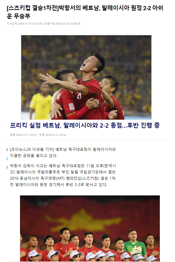 Mặc dù không đạt kết quả như mong đợi, nhưng ĐT Việt Nam đã thực sự để lại ấn tượng tốt đẹp trong mắt người hâm mộ bóng đá ở nhiều quốc gia, trong đó có Hàn Quốc. Bằng chứng là “Việt Nam - Malaysia” đã đứng đầu từ khóa được tìm kiếm nhiều nhất trên cổng thông tin điện tử lớn nhất tại xứ sở kim chi, Naver. Bên cạnh đó, rất nhiều trang tin tại quốc gia này đã liên tục cập nhật tình hình trận đấu, giống như chính đội tuyển nước họ đang “lâm trận”.