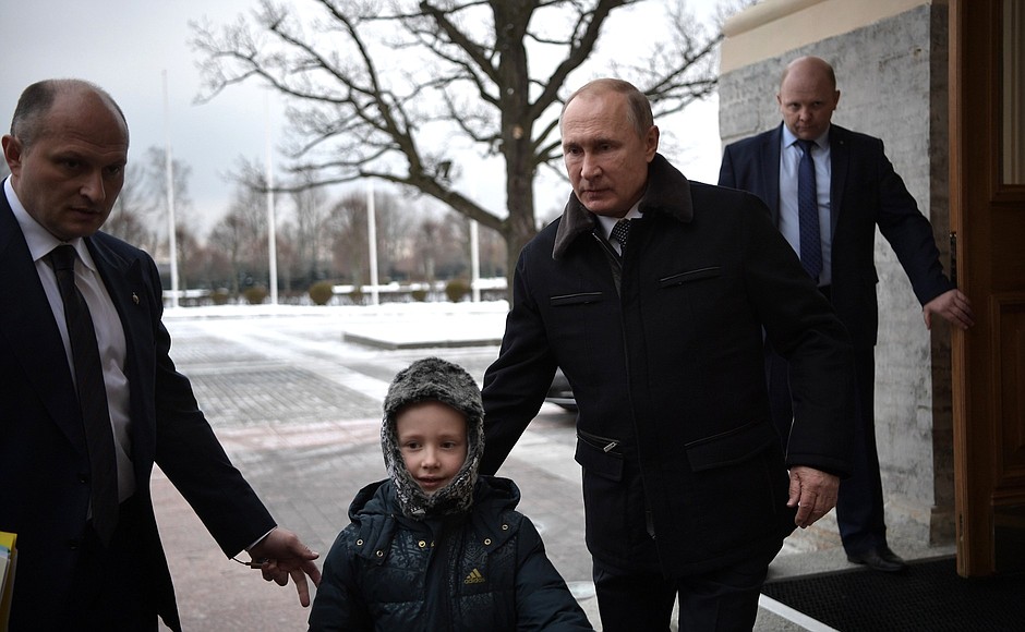 Đích thân Tổng thống Nga đón tiếp gia đình bé Palanov ở cung điện Constantine.