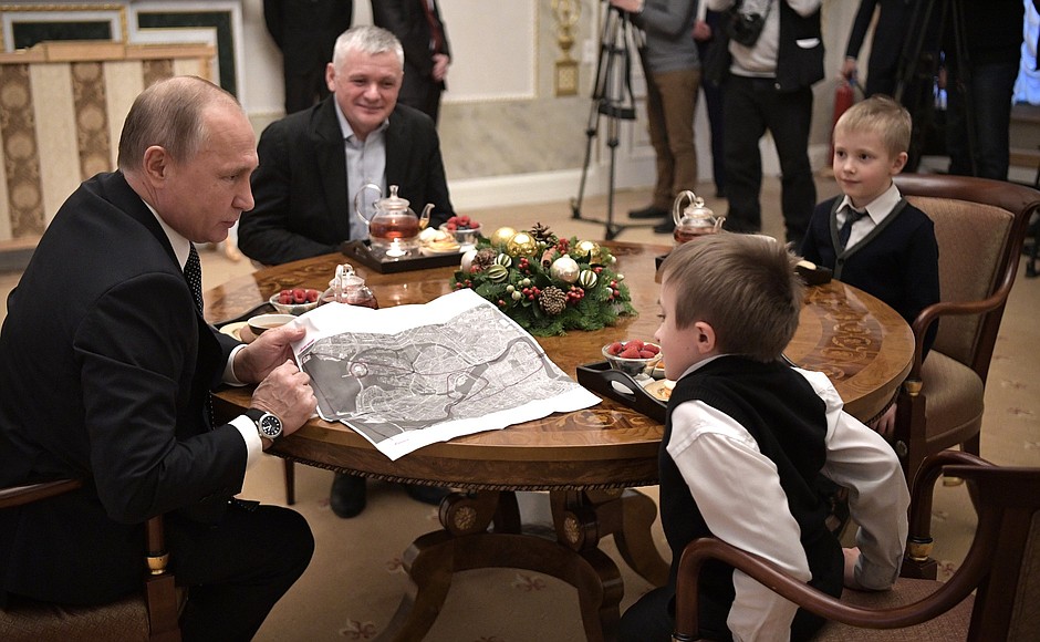 Tổng thống Putin chúc gia đình bé Palyanov hạnh phúc nhân dịp năm mới sắp tới và tặng cậu bé cùng anh trai bé những món quà.