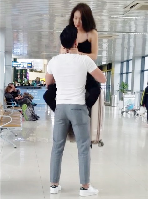Clip cô gái và chàng trai tập Gym tại san bay.