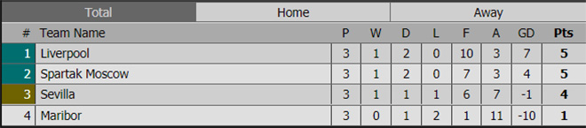 Liverpool giành được chiến thắng đầu tiên khi đè bẹp chủ nhà Maribor 7-0 tại Slovenia. Firmino và Salah đều ghi 2 bàn. Các bàn còn lại do công Coutinho, Oxlade-Chamberlain và Alexander-Arnold.