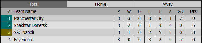 Manchester City 2 - 1 SSC Napoli (bảng F)