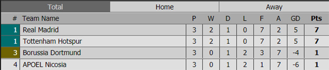 Real Madrid 1 - 1 Tottenham Hotspur (bảng H)