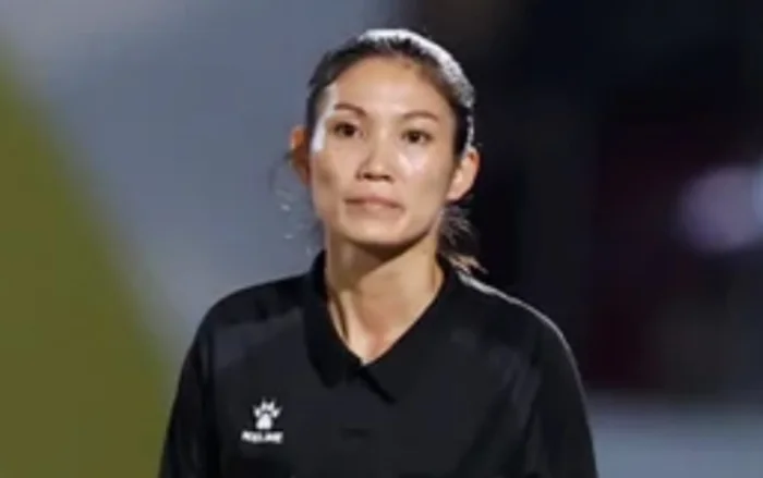 Trọng tài Lào đang gây chú ý với kiểu tóc gọn gàng, phù hợp với môi trường làm việc năng động.