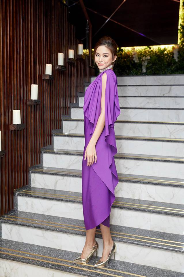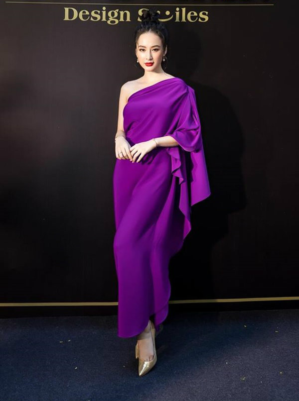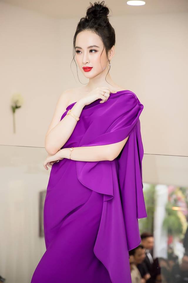 Trong trang phục tinh tế này, Angela Phương Trinh chẳng khác nào nữ thần xinh đẹp. Là một mỹ nhân nắm bắt xu hướng rất nhanh, nên sắc tím ( sắc màu chủ đạo năm 2018) được cô trưng dụng thường xuyên trong năm nay.