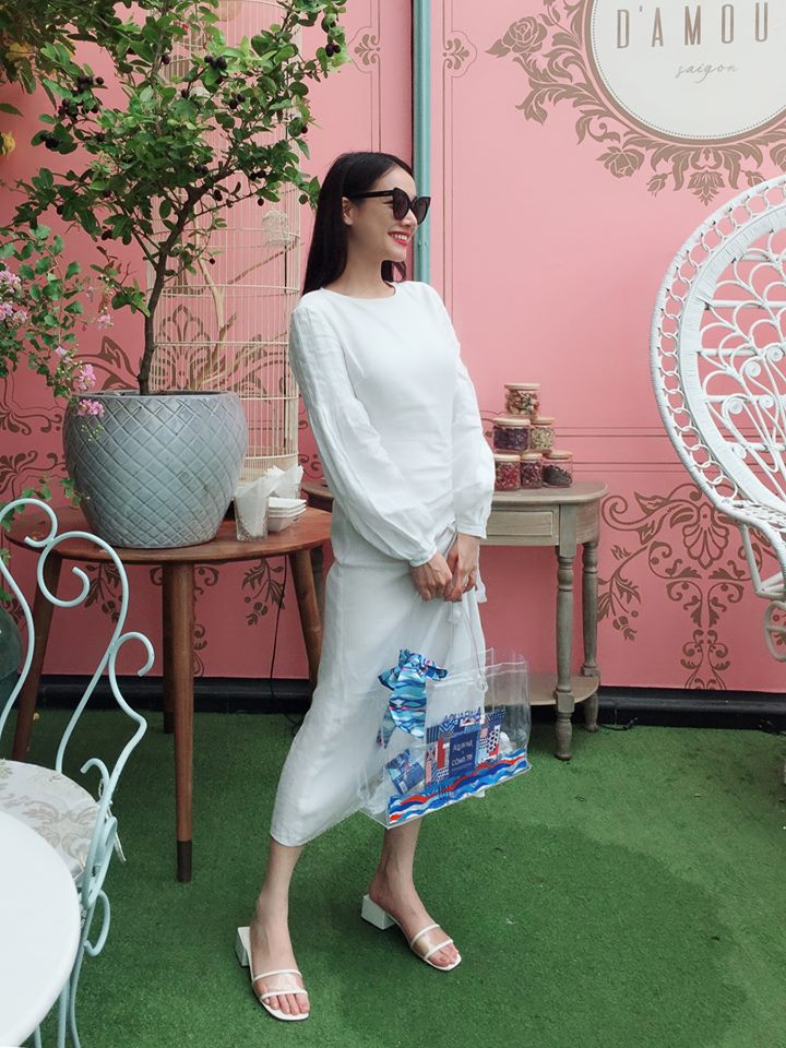 Có thể thấy, những bộ quần áo màu trắng luôn song hành cùng với Nhã Phương mọi nơi, mọi lúc.