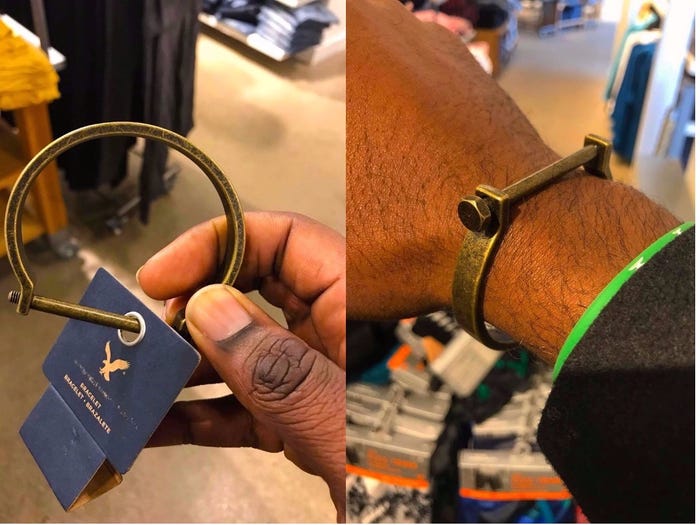 2. Tháng 12 năm 2017, mọi người phẫn nộ khi phát hiện American Eagle bán một chiếc vòng cho nam giới có thiết kế y hệt còng tay nô lệ. American Eagle đã xin lỗi và nói rằng sẽ không bán sản phẩm này nữa. Tuy nhiên nhiều khách hàng phản ánh chiếc vòng chỉ biến mất trên website còn tại các cửa hàng bán lẻ thì vẫn y nguyên.